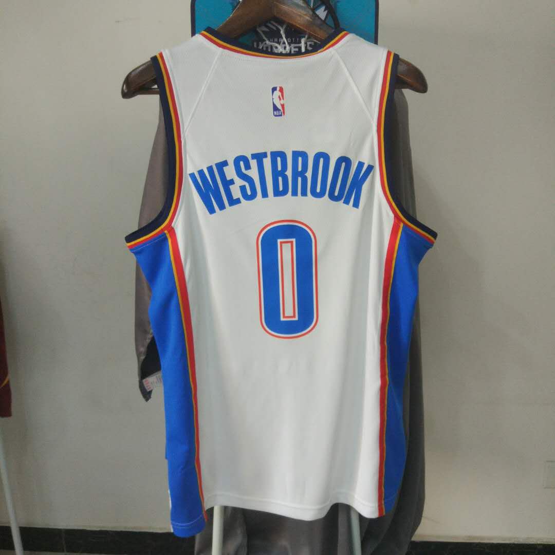 2017-18 Russell Westbrook Oklahoma City Thunder # 0 Association Maillot de basket-ball blanc 42518 Vêtements de sport et chaussures pour hommes