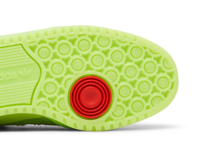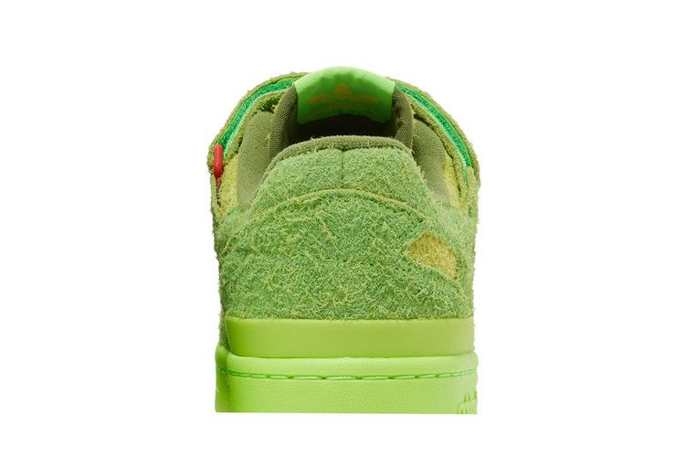 Model Dr. The Seuss x adidas Forum Low "The Grinch" comes dressed in a tonal design inspired by the classic Dr. Seuss character. The brushed suede upper comes in varying shades of green and is secured with traditional laces and an adjustable ankle strap. The tongue features adidas' signature trefoil and the Grinch's expressive eyes, while the toe box features a full likeness of the character. The model sits on a traditional neon green rubber sole.