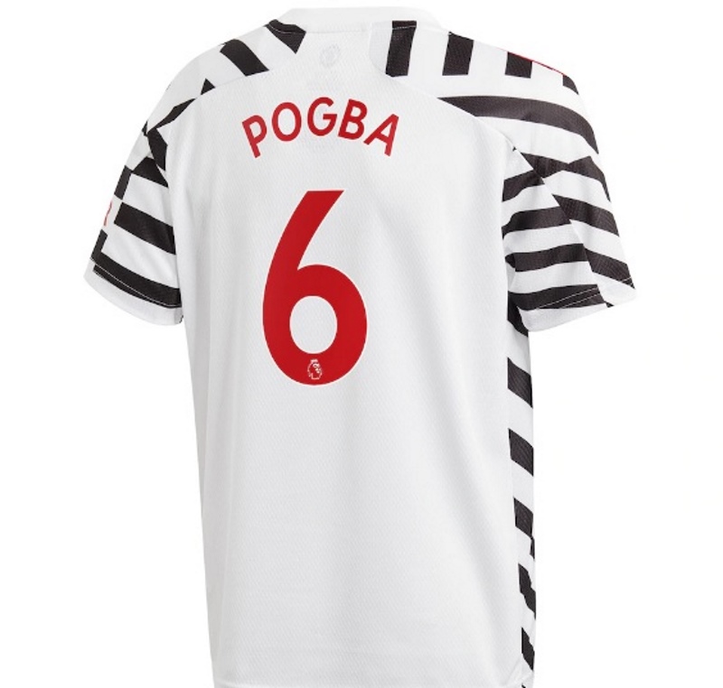 adidas Manchester United Troisième maillot 2020-21 avec impression Pogba 6 Maillot Blanc/Noir Blanc/Noir 268791 Vêtements et chaussures de sport pour hommes