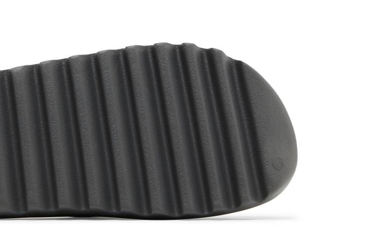 The adidas Yeezy Slide 'Granite' Sandal features sleek, modern lines with a tonal charcoal finish. Constructed from a single piece of lightweight, durable EVA foam, the slip-ons provide a comfortable fit thanks to the combination of a wide strap and a cushioned footbed. The latter features a three-stripe adidas logo as the only external branding detail. The outsole has strategic grooves for improved traction and a smooth, natural ride.