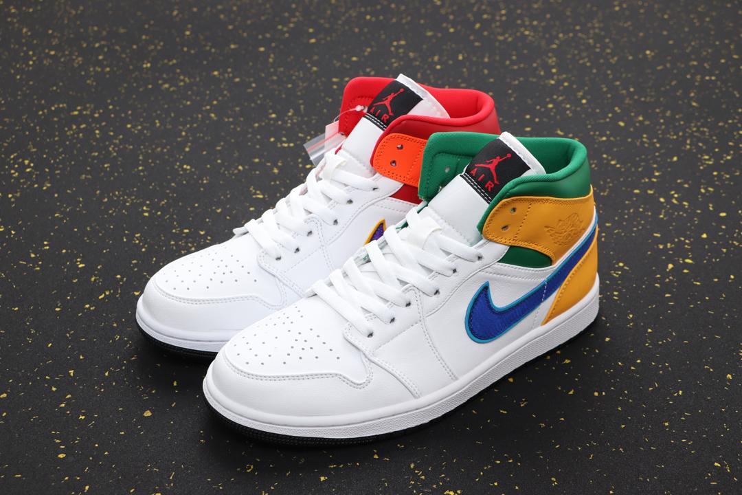 - Air Jordan 1 Mid Multicolor Swoosh Noir Blanc 554724 065