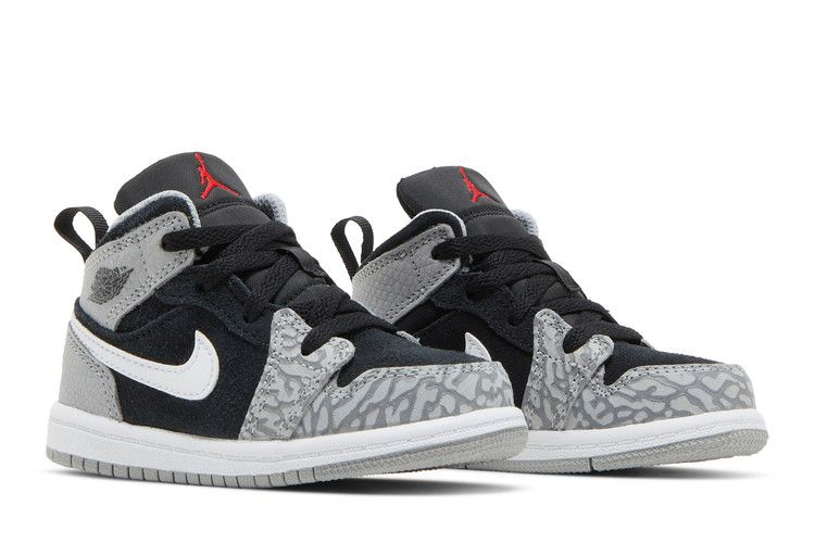 Air Jordan 1 Mid SE TD 'Elephant Toe' Noir/Blanc/Gris fumée clair/Rouge université DM6217 016 Vêtements de sport et chaussures pour enfants