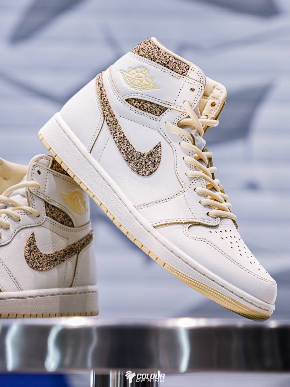 The Air Jordan 1 Retro High OG "Craft – Vibrations of Naija" features a subtle colorway of MJ's first signature model. Constructed of White leather throughout the upper, it features a Pale Vanilla Swoosh with Black hits. Similar detailing is applied to the high collar, which wraps around the ankle and features the Wings logo on the side. Woven Nike Air branding adorns the breathable nylon tongue. The high-top sneakers are set on a durable rubber outsole with white sidewalls and a cream outsole.