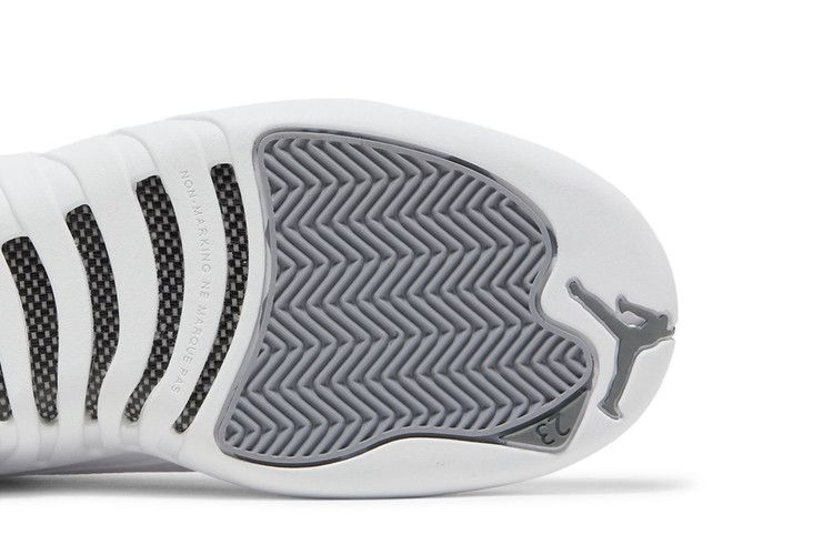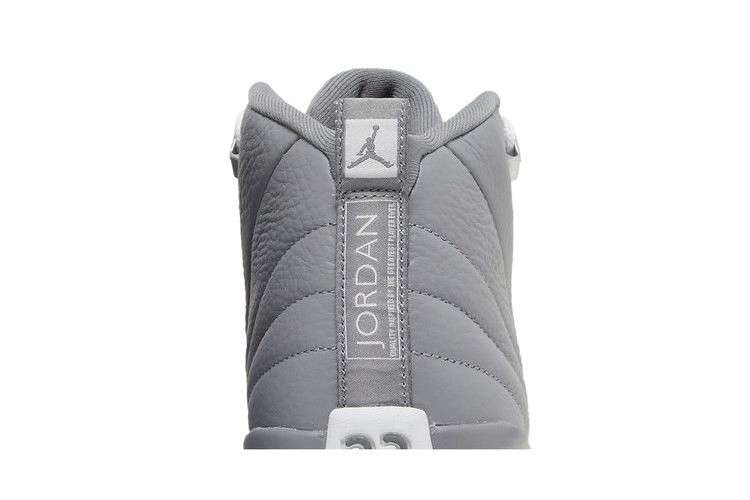 Offering in larger kids' sizes, the Air Jordan 12 Retro GS "Stealth" features a classic silhouette in a sophisticated neutral finish. Radiant stitching adorns the gray tumbled leather upper, contrasted by durable white lizard-textured faux leather overlays. Jumpman branding on the tongue and heel tab supports the sneaker's gray color palette. The sneaker sits atop a full-length Phylon midsole, reinforced with responsive Zoom Air cushioning and supported by a rubber outsole with a herringbone pattern.
