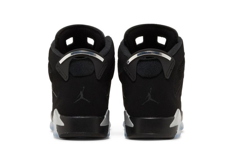 Created for the big kids, the Air Jordan 6 Retro GS 'Chrome' takes cues from the 2015 AJ6 Low. The classic silhouette is crafted in black synthetic nubuck, complemented by details such as a perforated lining, an extended heel tab and a molded tongue with a comfortable grip. Jumpman branding is featured on the laces, back heel and toe box. Chrome accents shine atop the lightweight foam midsole, which is padded with Air-sole cushioning and supported by a translucent rubber outsole.