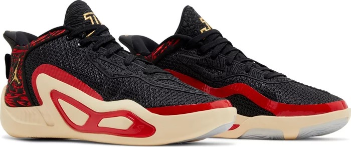 Air Jordan Tatum 1 GS Zoo is Jayson Tatum's first signature sneaker for teenagers, made in an original color scheme. Airy black mesh with red accents is used in the lightweight upper, reinforced with a TPU frame that eliminates the need for unnecessary materials. Tatum's personal logo is embroidered on the tongue, while the Jumpman logo is embossed on the heel side. The forefoot midsole features a large Zoom Air foam unit for springy cushioning and on-court responsiveness.