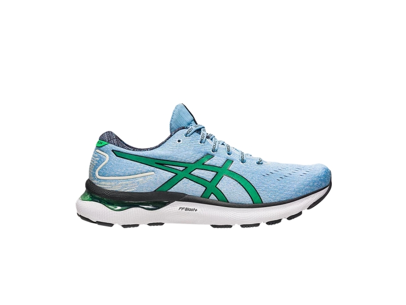The Asics Gel Nimbus 24 Arctic Sky Cilantro Shoe provides enhanced impact protection for distance training. Creating a softer landing with every step, the shoe is also approximately 20g lighter than the previous version. Soft blue engineered mesh and a flexible midfoot panel make these shoes more comfortable on long runs. FF BLAST™ PLUS cushioning makes the shoe lightweight and provides a softer underfoot feel. This material also helps to increase the rebound of the shoe during the push-off phase.
