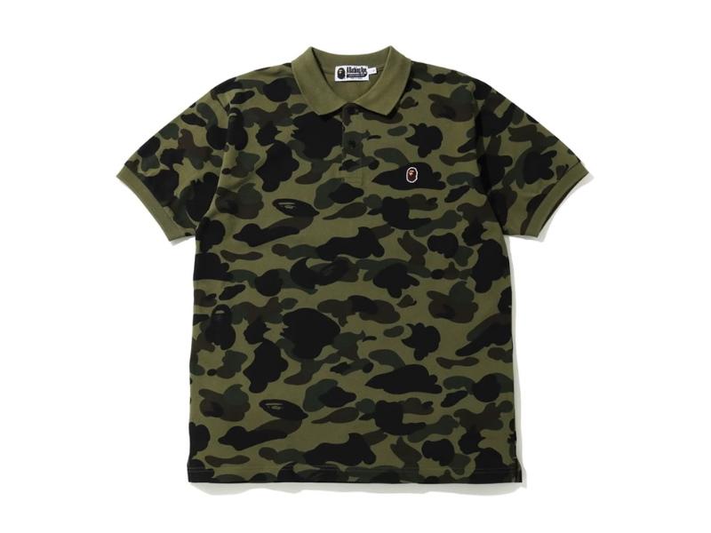 BAPE 1st Camo Ape Head One Point Polo Vert Vert 348305 Vêtements et chaussures de sport pour hommes