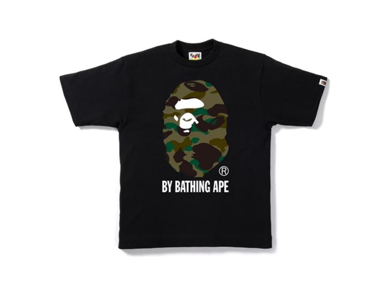 BAPE 1st Camo By Bathing Tee Black/Camo is made of high quality material in black. A BATHING APE offers simplicity in this premium cotton jersey T-shirt. Designed exclusively with their signature BAPE HEAD print on the chest, highlighted by a traditional camo design, signed by the brand name. The T-shirt is equipped with a branded logo patch on the sleeve.