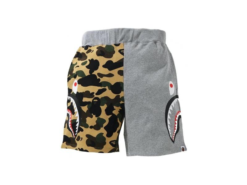 BAPE 1st Camo Half Side Shark Sweat Shorts Jaune Violet 423200 Vêtements et chaussures de sport pour hommes