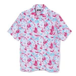 BAPE Store Miami Chemise à col ouvert RoseBleu 154660 Vêtements et chaussures de sport pour hommes