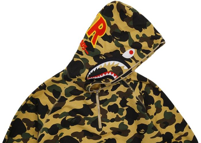BAPE Ultimate 1st Camo PONR Shark Half Zip Raglan Pull à capuche Jaune jaune 36006 Vêtements et chaussures de sport pour hommes