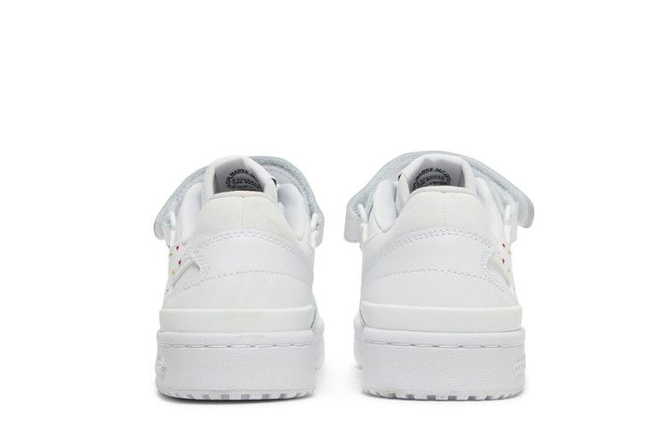 The Swarovski x adidas Women's Forum Low "White Black" Sneaker updates the retro look with sparkling accents and eco-friendly construction. An adjustable midfoot strap secures the white leather upper, made partly from recycled waste. An embossed Trefoil logo adorns the X-shaped overlay, which is further adorned with a row of multi-colored Swarovski crystals. Low-top sneakers sit on a white rubber sole with an EVA wedge on the medial side.
