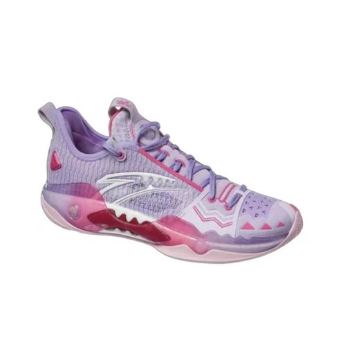 Inspiration for sneakers Anta Shock Wave 5 Pro Valentine's Day ferocious predators and rugged terrain. For example, on the side of the midsole there is a TPU panel that resembles a fish bone and imitates the skin of a crocodile or cobra. The breathable upper features a purple and pink color combination, while jagged lines create the illusion of teeth. In terms of technology, the shoe features a full-length Nitrogen midsole and insole, TPU traction plates, and a carbon plate. The rubber sole protrudes slightly above the toe and is made of non-slip material.