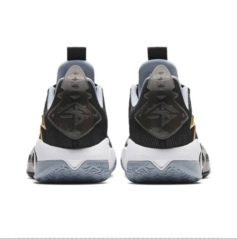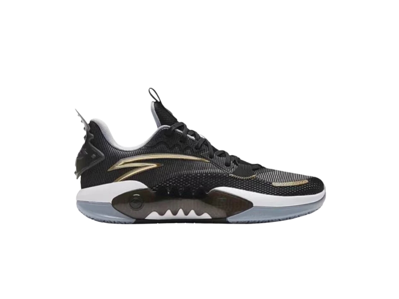 Inspiration for these sneakers Anta Shock Wave 5 Team Black Golden ferocious predators and rugged terrain. For example, on the side of the midsole there is a TPU panel that resembles a fish bone and imitates the skin of a crocodile or cobra. The breathable upper features a black and gold color combination while jagged lines create the illusion of teeth. In terms of technology, the shoe features a full-length Nitrogen midsole and insole, TPU traction plates, and a carbon plate. The rubber sole protrudes slightly above the toe and is made of non-slip material.