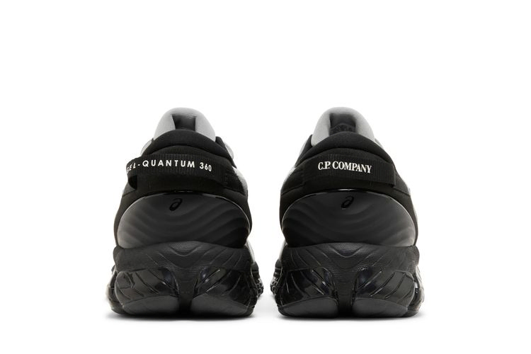 Sneakers C.P. The Company x ASICS GEL Quantum 360 8 "Cement Grey" features breathable gray mesh with tonal side stripes and embossed C.P. logo. Company on the toe. A black synthetic overlay wraps around the heel, paired with a collar lining and midsole that utilizes FF BLAST foam with ASICS GEL cushioning. The heel tabs feature mismatched GEL Quantum 360 and C.P. logos. Company.