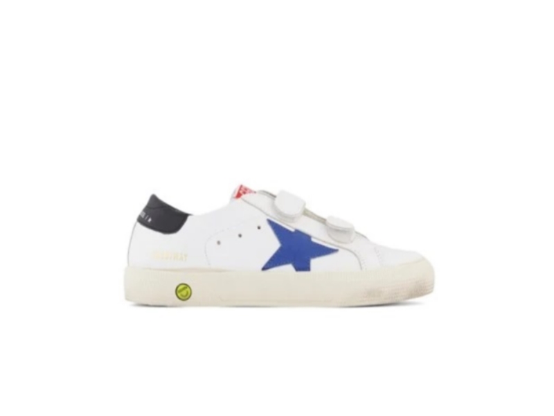 Golden Goose Superstar Kids White Blue sneakers have a round toe, Golden Goose logo on the side, a dirty and scuffed effect. A rubber outsole completes the design. Made in Italy.