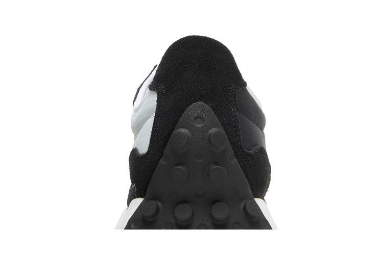 The New Balance 327 'Black' features a must-have colorway of the silhouette inspired by vintage '70s running styles. The sneaker features a black nylon upper with tonal suede overlays and a large white 'N' logo on the lateral side. Lightweight cushioning is provided by an EVA midsole with crisp white sidewalls in a classic wedge shape. Underfoot, a studded rubber outsole, inspired by the New Balance 355, frames the toe and heel.