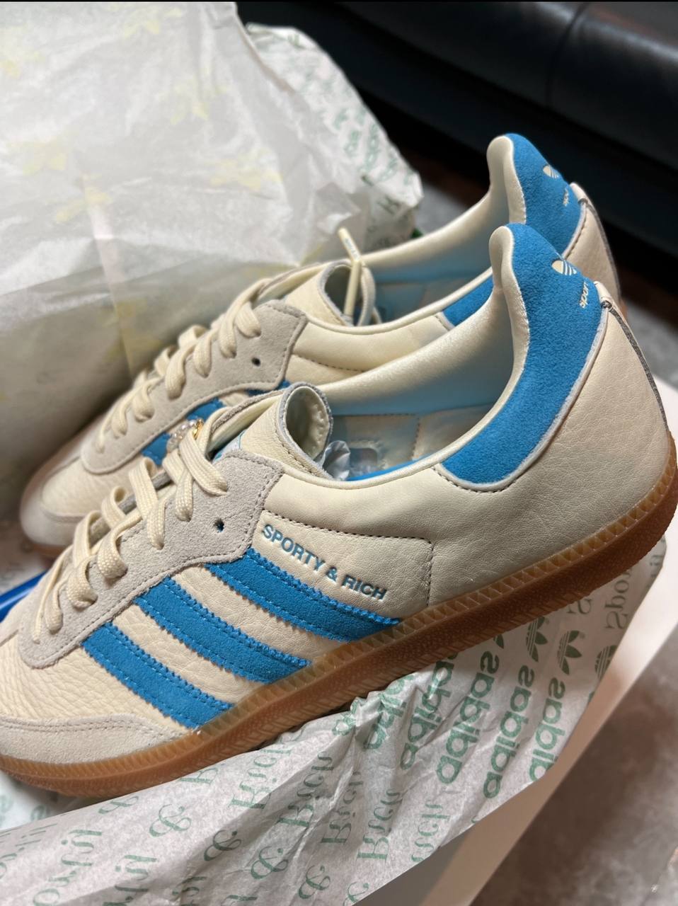 Baskets Sporty & Rich x adidas Samba OG Crème Bleu Noir IE7096 Vêtements et chaussures de sport pour hommes