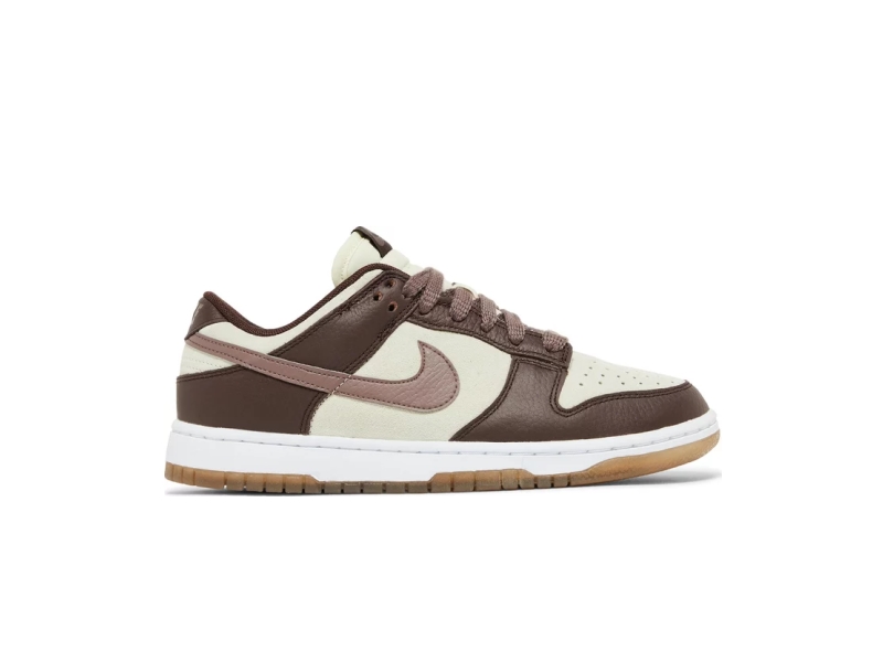 The Nike Dunk Low "Plum Eclipse" Women's Shoe combines a simple two-tone color scheme with an updated design. The Coconut Milk suede upper is accented by contrasting Eclipse Plum tumbled leather overlays. The earthy tones of the upper are offset by a white rubber outsole, stitched sidewall and internal foam wedge for lightweight cushioning. The translucent rubber outsole has a traction pattern originally designed for walking on parquet floors.