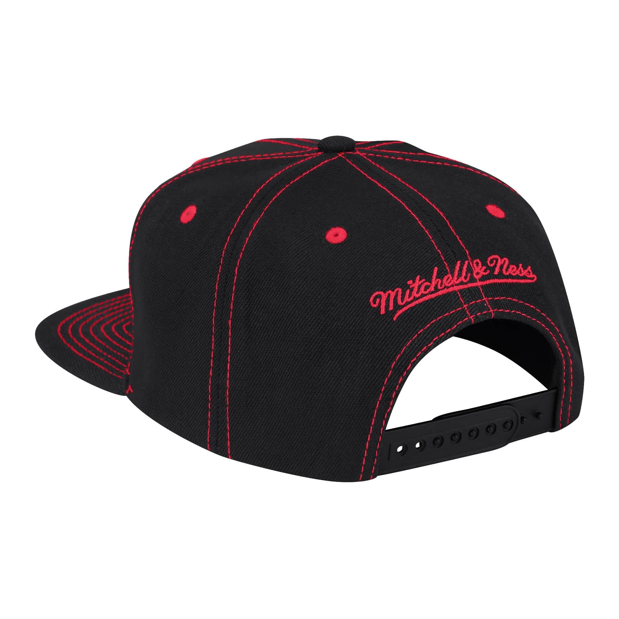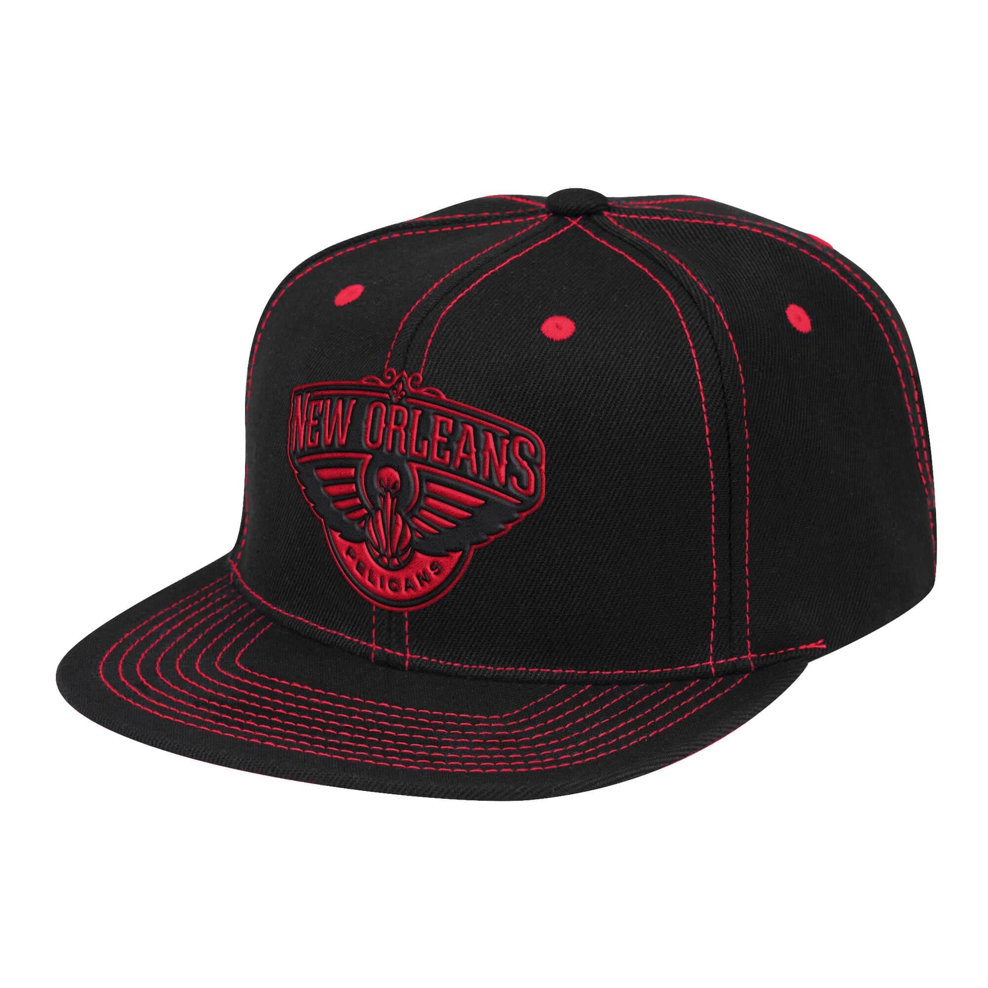 Black Baseball Cap with Red Accents Mitchell & Ness Contrast Stitch Snapback New Orleans PelicansRetro style features a snap closure at the back for adjustment, an embroidered Pelicans logo, Mitchell & Ness branding on the back and a straight visor for maximum style. The baseball cap is made of polyester with a black lower part of the visor.
