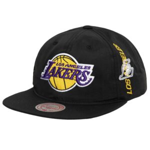 Black Baseball Cap Mitchell & Ness Nylon Szn Deadstock Snapback Los Angeles Lakers Hathas a retro style with a snap closure at the back for adjustment, Embroidered Lakers logo, Mitchell & Ness branding on the back and a straight visor for maximum style. The baseball cap is made of nylon with a black lower part of the visor.