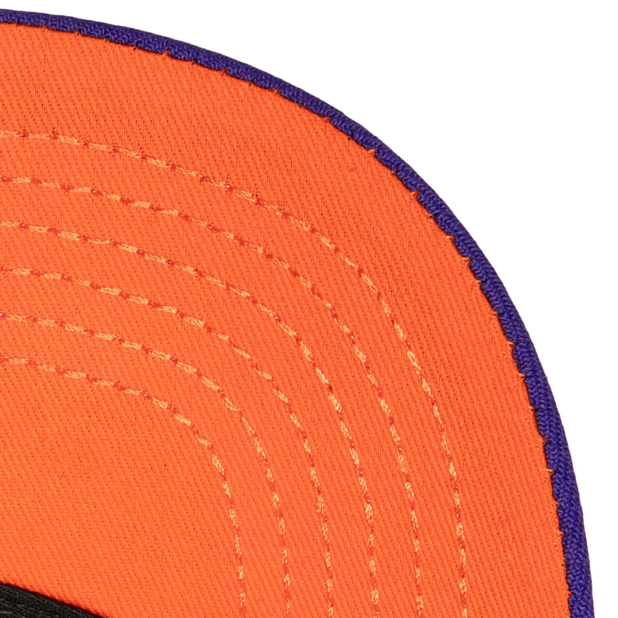 Purple Baseball Cap with Orange Accents Mitchell & Ness Rear Script Deadstock Snapback HWC Phoenix Suns features a retro style with a snap closure on the back for adjustment, an embroidered Phoenix team logo, Mitchell & Ness branding on the back and a straight visor for maximum style. The baseball cap is made of polyester with a green lower part of the visor.