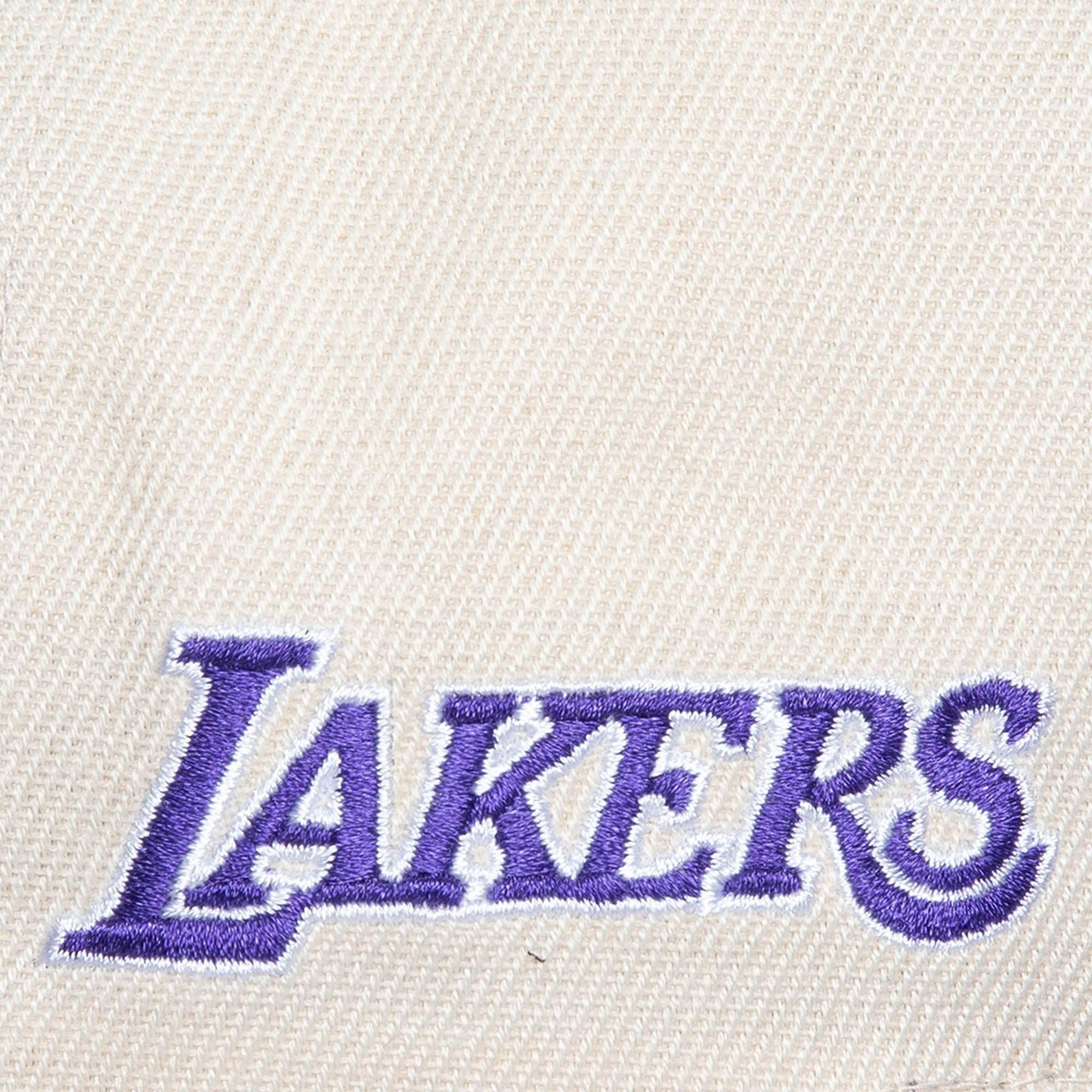 White baseball cap Mitchell & Ness Speed Zone Snapback Los Angeles Lakers Hathas a retro style Features a snap closure at the back for adjustment, an embroidered Lakers team logo, Mitchell & Ness branding at the back and a straight visor for maximum style. The baseball cap is made of polyester with a green lower part of the visor.