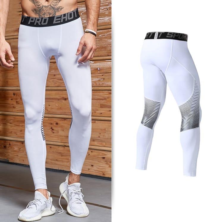 Ehot Lines White Tights men's white from thick material are complemented by a print of thin black lines on the back. The fabric from which they are made effectively wicks away moisture and helps maintain optimal thermoregulation. This set has an ergonomic cut with flat seams and is perfect as sports equipment.