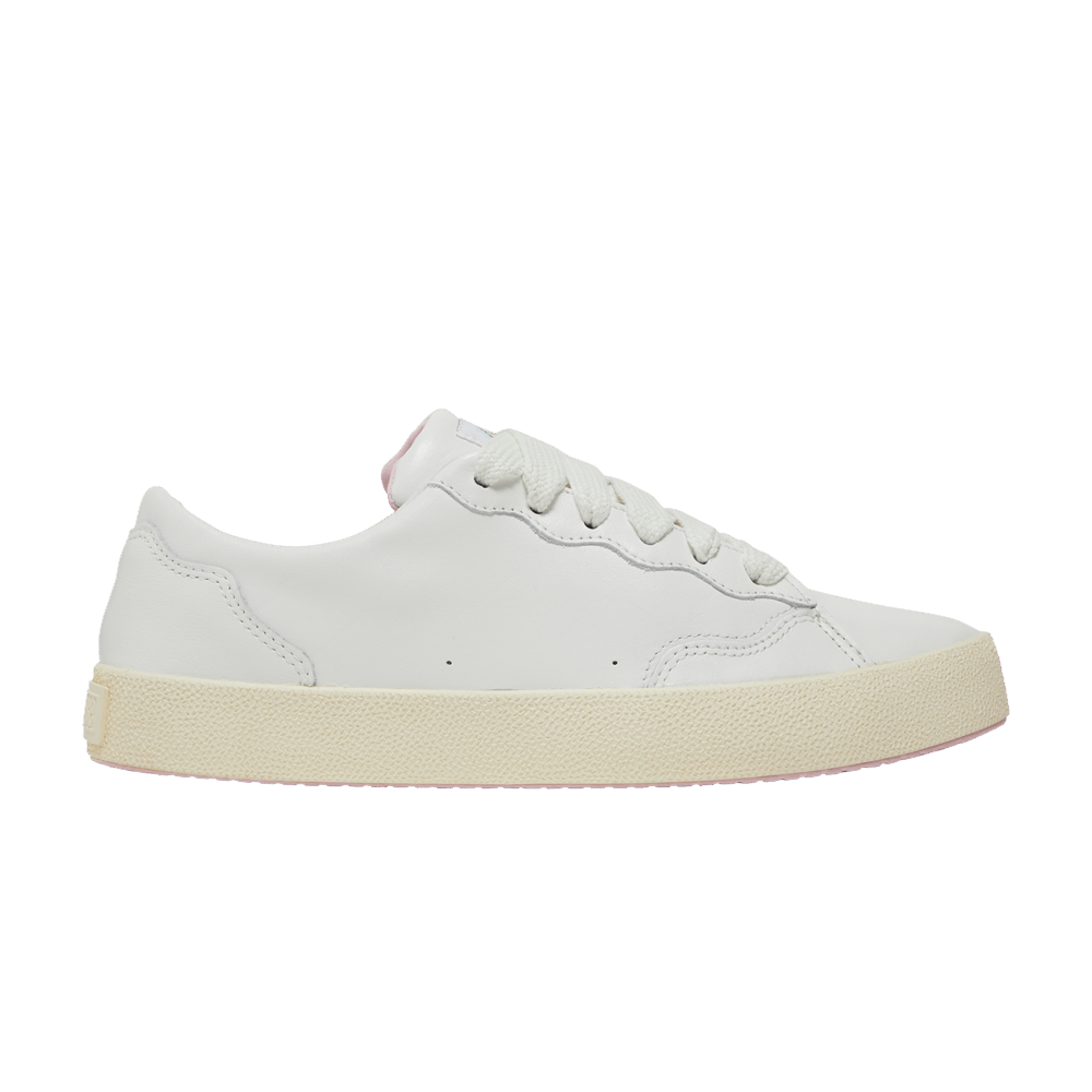 The Golf Le Fleur x Converse GLF 2.0 'Brilliant White' introduces a new silhouette created in collaboration with Tyler Creator. The minimalist design is highlighted by a one-piece white leather upper with distorted lines and Golf Le Fleur branding on the tongue. Pastel pink accents appear on the inner tongue and dual-branded toe cap, which is constructed with Converse's signature CX foam for lightweight cushioning. The low top sits atop a vintage midsole supported by a pink rubber outsole.