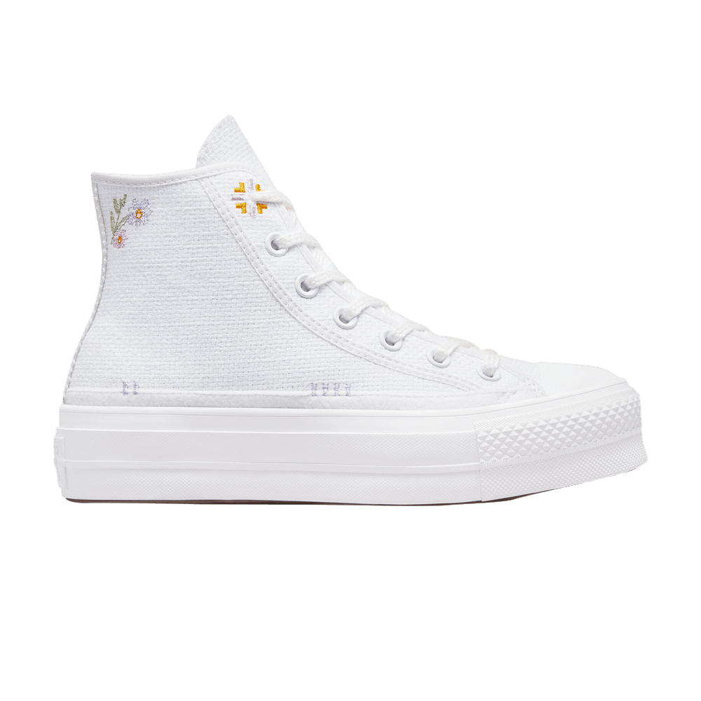 Converse Wmns Chuck Taylor All Star Lift Platform High 'Automne Broderie – Blanc 'Baskets Blanc/Pierre de lune violet/Souris A05068C Vêtements de sport et chaussures pour femmes