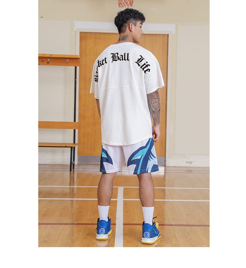 Ehot Basketball Life White T-Shirt -The Shirt is white in color and features a stylish design and loose silhouette. The back of the T-shirt is decorated with a black print with the inscription "Basketball Life", and on the chest there is a small image of a ball. The T-shirt is made of material with excellent ventilation, which dries quickly and keeps its shape well.