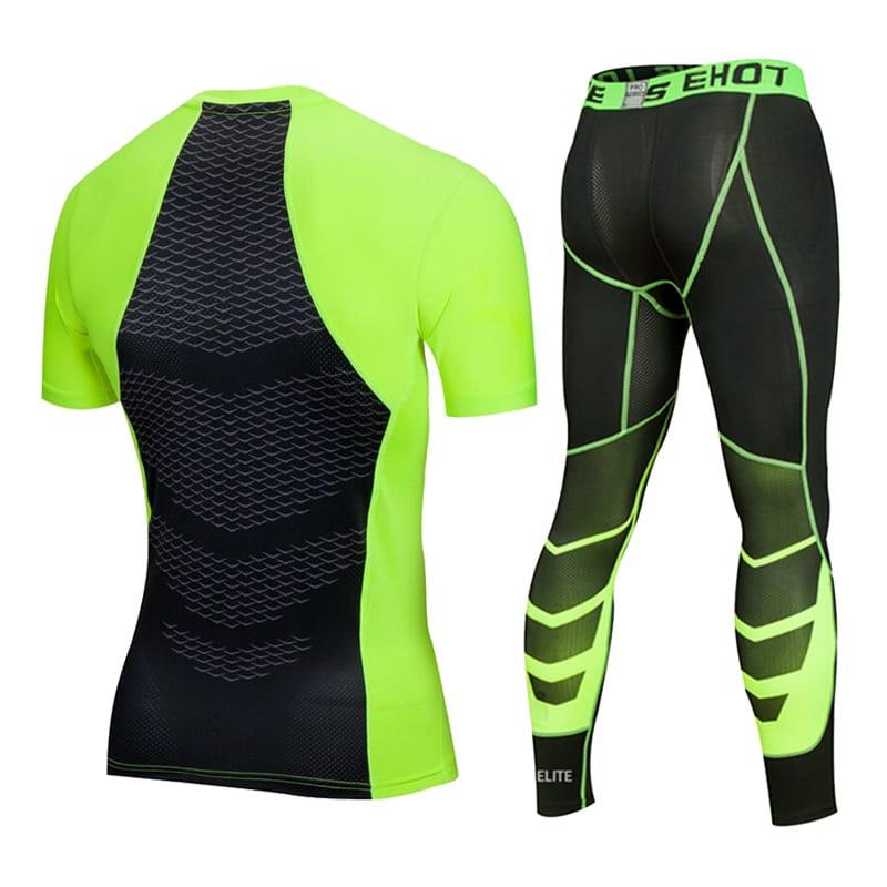 Ensemble collants de compression et T-shirt de course Ehot vert-noir ensemble t-shirt-collants noir 516341 Vêtements d'entraînement de basket-ball