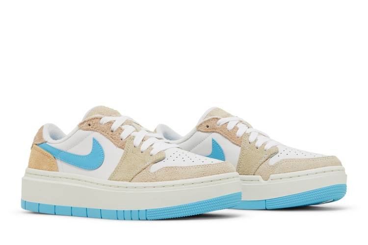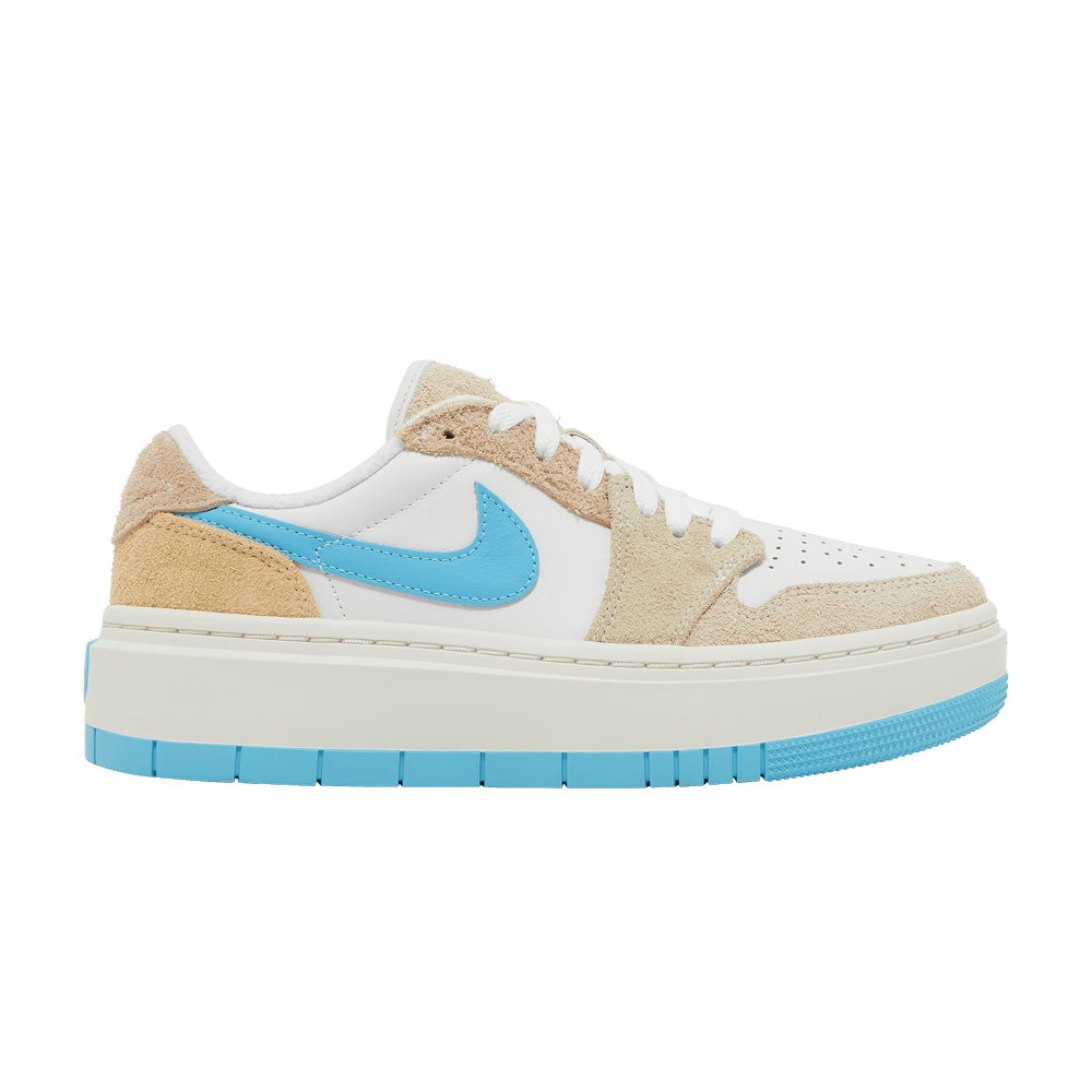 The Women's Air Jordan 1 Elevate Low SE "Salt Lake City" features windy, earthy tones that reflect Utah's Great Lakes desert landscape. This trendy reimagining of the Air Jordan 1 features a White leather upper with Sand brushed suede overlays and Baltic Blue signature Swoosh. The outline of the Wings logo is highlighted with tonal stitching on the heel tab, while Nike Air branding is featured on the toe box. The sneakers rest on a white platform midsole, an Air unit is built into the heel, and durable blue rubber surrounds the perimeter of the outsole.