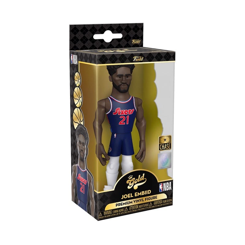 Vinyl Gold 5 figurine ″ Joel Embiid – 76ers would be the perfect gift for a basketball fan! Add the new Funko GOLD Joel Embiid premium vinyl figure to your NBA collection. This 5-inch (13 cm) tall Joel Embiid collectible figure wears a red Philadelphia 76ers home uniform. GOLD is the perfect way to commemorate some of your favorite NBA players in your collection. Each figure comes in an elegant, display-ready box that's easy to stack with other GOLD collectible figures. There is a 1 in 6 chance you can find a Chase option with Joel Embiid in the blue 76ers away jersey.
