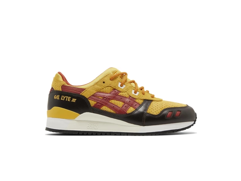 The Ronnie Fieg x ASICS Gel Lyte 3 Remastered 'Super Yellow' is a premium running shoe from the founder of Kith. Created to the exact specifications of the duo's first collaboration back in 2007, the retro silhouette features a gray nubuck upper with perforated detailing on the toe box and quarter panel. The latter features tonal mesh and signature tiger stripes in bright yellow. "Fieg" is embroidered on the split tongue, while dual ASICS and Kith branding appears on the toe box. The shoe sits atop a full-length EVA midsole with ASICS Gel cushioning.