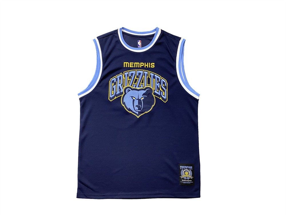 Jersey Buck Up Memphis Grizzlies Navy Jersey blue color has straight cut with a round neckline and blue and white trim. The Grizzlies colors are printed on the front and the club logo is on the back. A comfortable T-shirt is perfect for training, as it does not restrict movement and is made of quick-drying material.