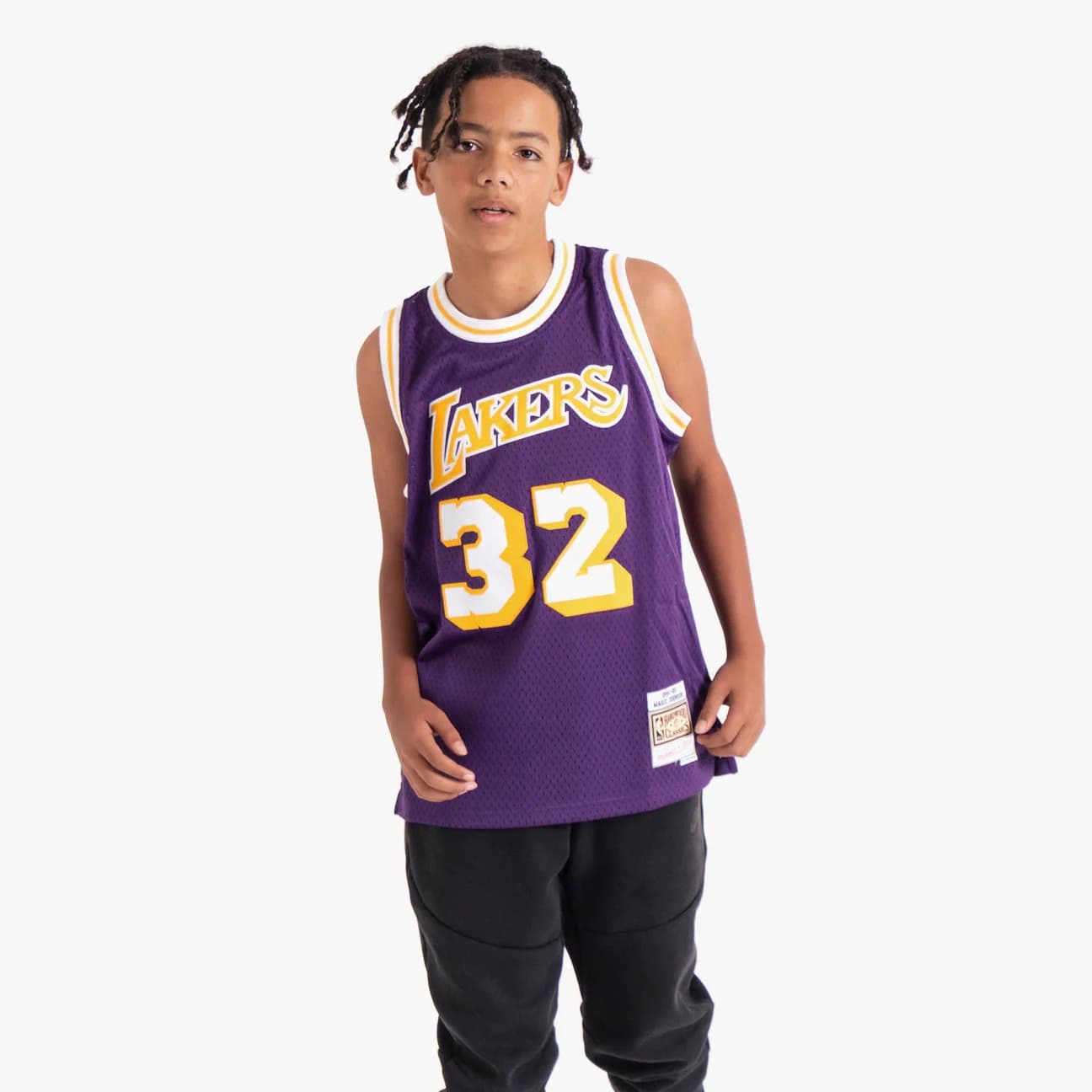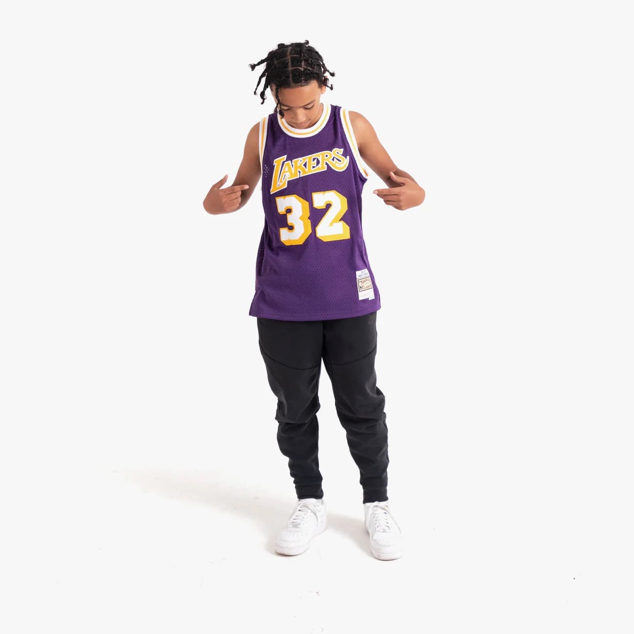 Maillot de basket-ball 1984-85 Los Angeles Lakers Magic Johnson # 32 Jeunesse Swingman Hardwood Classics Maillot Violet Violet 696845 Vêtements de sport et chaussures pour enfants