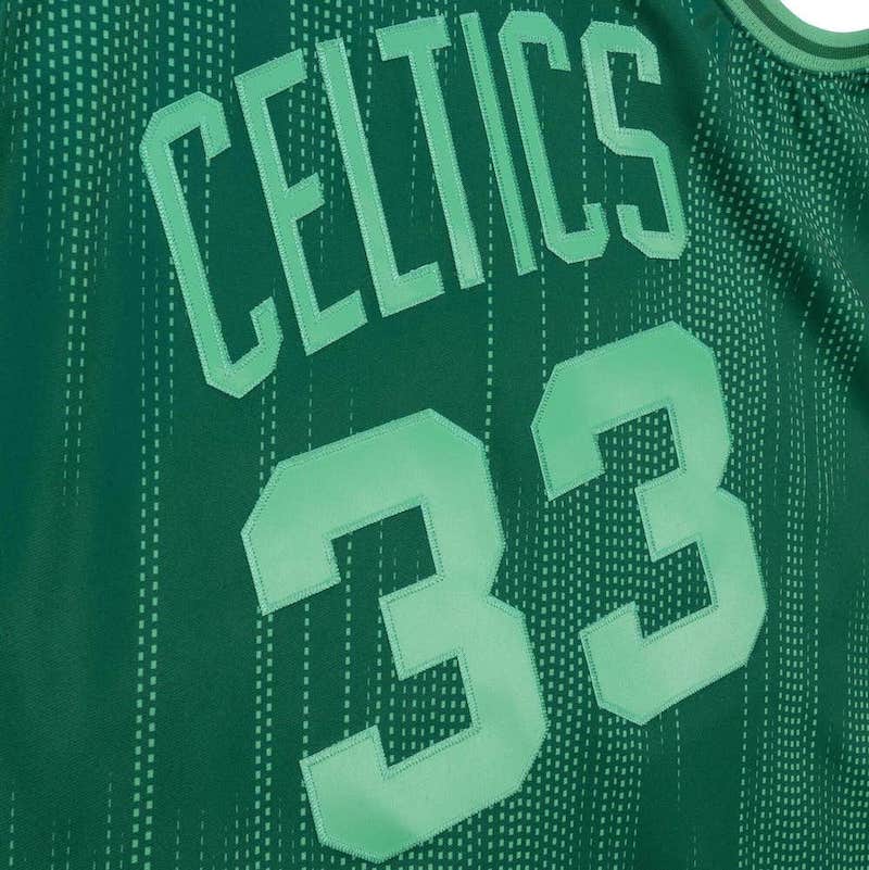 Jersey 1985-86 Boston Celtics #33 Larry Bird Green Monochrome Jersey will help you recreate your favorite player in Boston Celtics history. Created by Mitchell & Ness, the jersey features a retro design with distinct player and team graphics. Made from lightweight mesh fabric, this item will help you relive Larry Bird's greatest moments.