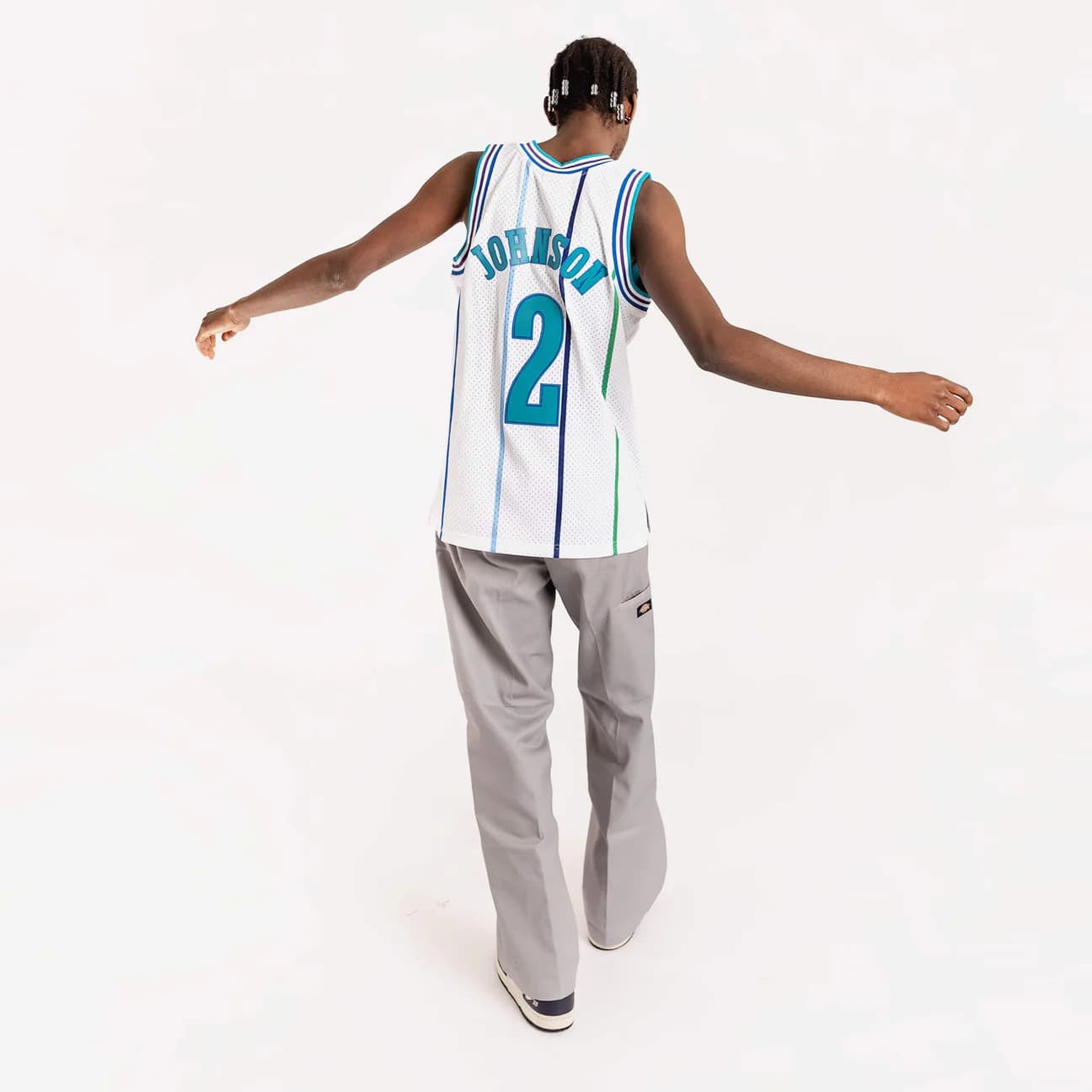 Maillot de basket-ball 1992-93 Charlotte Hornets Larry Johnson #2 Swingman Hardwood Classics Maillot blanc 696331 Vêtements de sport et chaussures pour hommes