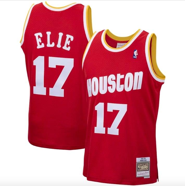 Maillot de basket-ball 1993-94 Houston Rockets # 17 Mario Elie Mitchell & Ness Maillot rouge noir 601222 Vêtements de sport et chaussures pour hommes