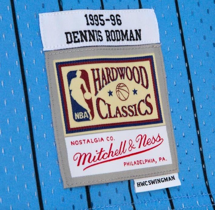 Maillot de basket-ball 1995-96 Chicago Bulls #91 Dennis Rodman Mitchell & Ness Fadeaway Noir/Bleu clair Jersey Rouge 580585 Vêtements de sport et chaussures pour hommes