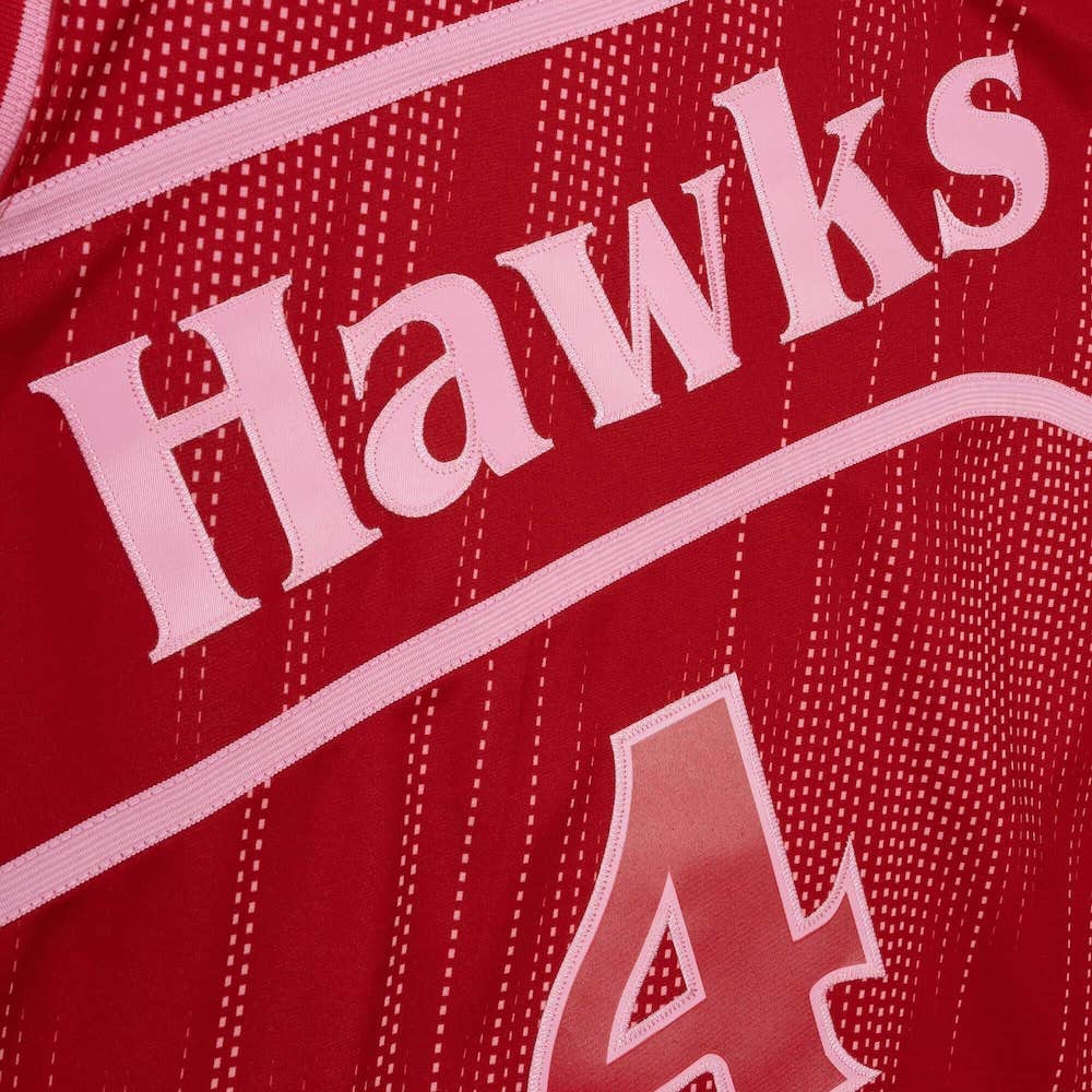 Jersey 1996-97 Atlanta Hawks #4 Spud Webb Hardwood Red Monochrome Jersey help you recreate the look of your favorite player in Atlanta Hawks history with this Spud Webb 1996-97 Hardwood Classics Monochrome Jersey. Created by Mitchell & Ness, the jersey features a retro design with distinct player and team graphics. Made from lightweight mesh fabric, this style will help you relive Spud Webb's greatest moments.
