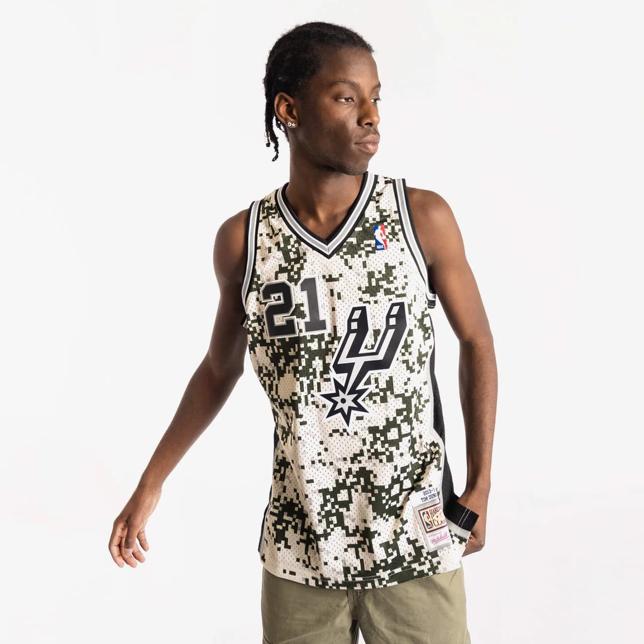 Maillot de basket-ball 2013-14 San Antonio Spurs Tim Duncan # 21 Swingman Hardwood Classics Camo Jersey 695171 Vêtements de sport et chaussures pour hommes