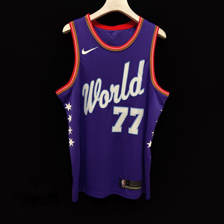 Maillot de basket-ball 2020 Mavericks Luka Doncic #77 NBA Rising Star World Team violet maillot 63148 Vêtements de sport et chaussures pour hommes