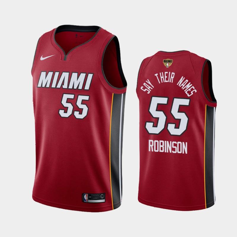 Maillot de basket-ball 2020 NBA Finals Bound Miami Heat Duncan Robinson #55 Rouge Dites leurs noms Déclaration Blanc 130383 Vêtements de sport et chaussures pour hommes