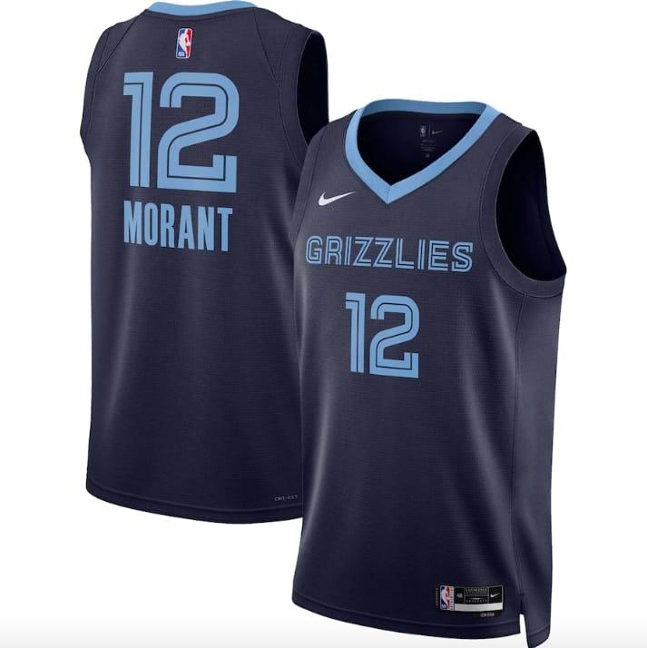 Maillot de basket-ball 2022-23 Memphis Grizzlies #12 Ja Morant Swingman Icon Navy Jersey 606969 Vêtements de sport et chaussures pour hommes