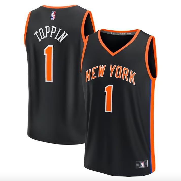 Maillot de basket-ball 2022-23 New York Knicks #1 Obi Toppin Fast Break City Maillot noir 613236 Vêtements de sport et chaussures pour hommes