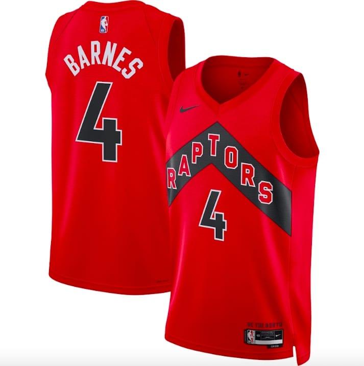 Maillot de basket-ball 2022-23 Toronto Raptors #4 Scottie Barnes Swingman Icon Maillot rouge 621248 Vêtements de sport et chaussures pour hommes