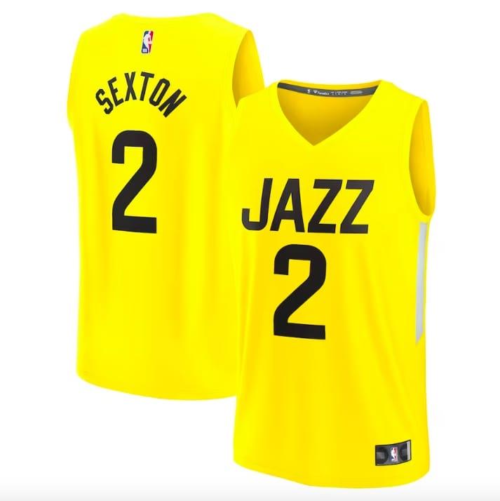 Maillot de basket-ball 2022-23 Utah Jazz #2 Collin Sexton Fast Break Icon Maillot jaune 626550 Vêtements de sport et chaussures pour hommes